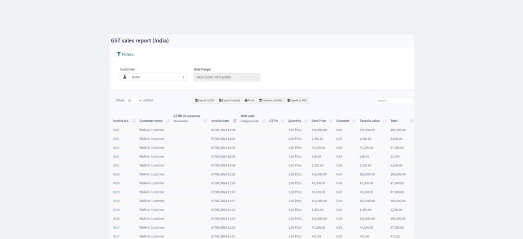 Export your GSTR1 data in JSON format for seamless GST return filing. Access GSTR-2 and GSTR-3B reports to simplify GST tax filing for you or your CAs.